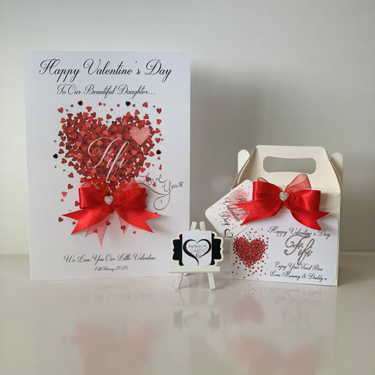 Valentine's Red Present, Glasses & Chocolates With Bow