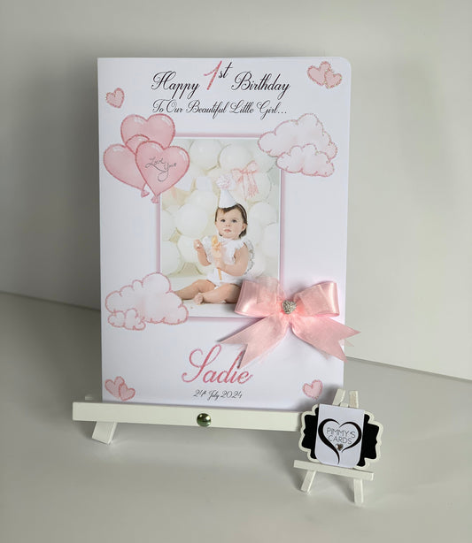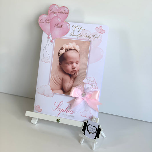 New Born Baby Girl Pink 3D Heart Balloons Pop Out Card