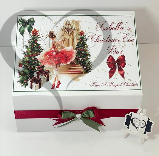 Traditional Emerald Green & Red Christmas Nutcracker Ballerina Christmas Eve Box