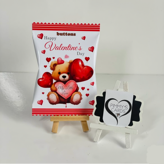 Valentine's Teddy Bear Treat Box Set With x2 Chocolate Buttons / Haribo Packets Of Sweets